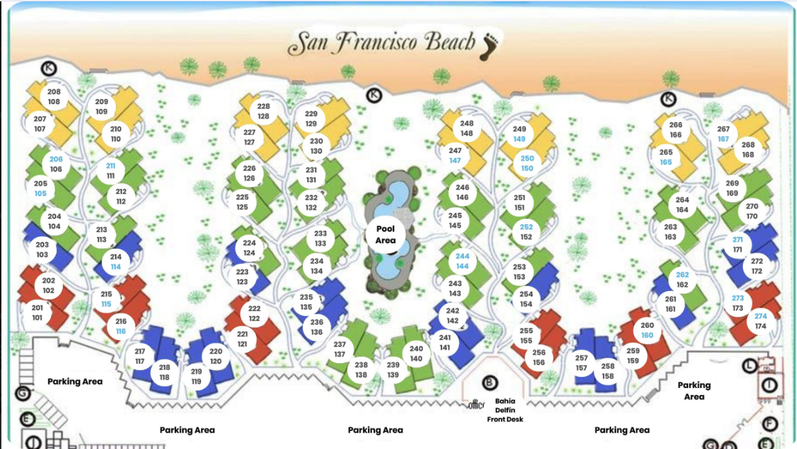 Note: If the number of people in your group exceeds the maximum capacity of the condo you have rented, Bahía Delfín staff will not be allowed to enter the condo. The total number in your party includes children and infants. Also, Bahía Delfín only allows one car parked inside the complex per condominium. Additional cars can be parked outside the gate in a 24-hour guarded area.