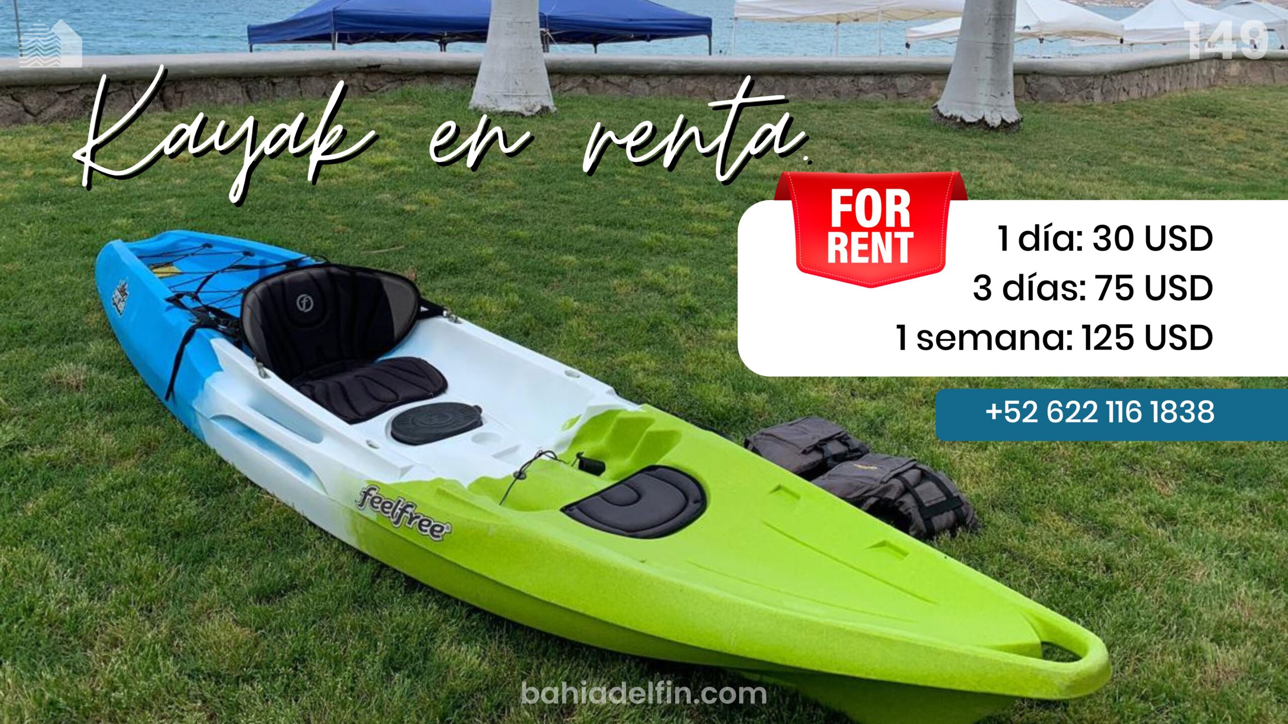 Además, solo para nuestros huéspedes, ofrecemos alquiler de un kayak a tarifa especial: $30 por un día, $75 por tres días, y $175 por una semana.